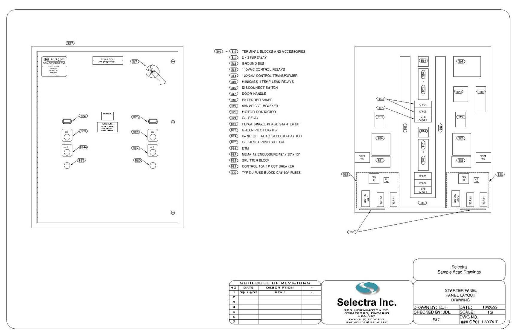 SINGLE PHASE STARTER PANEL This single phase duplex pump starter is designed to run two 7.5 hp Flygt pumps with MINI CASS II temperature & leakage protection relays AutoCad drawings are shown below